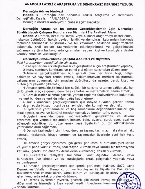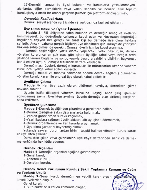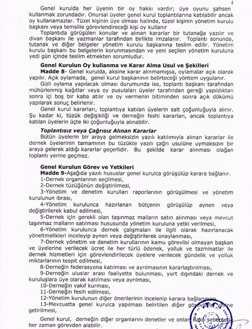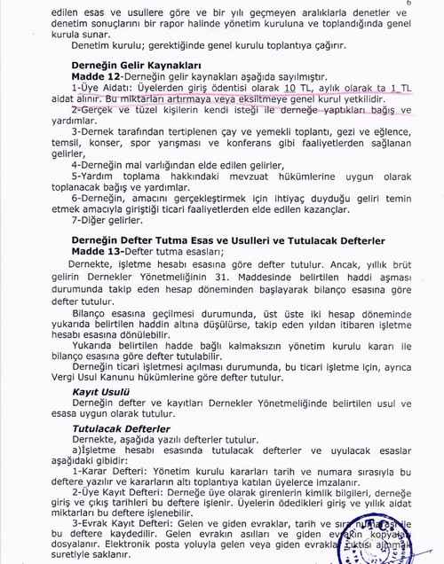 Dernek tüzüğümüz güncel olup, kişisel veriler kapatılmış ve kalan kısmı aleni şekilde paylaşılmıştır: